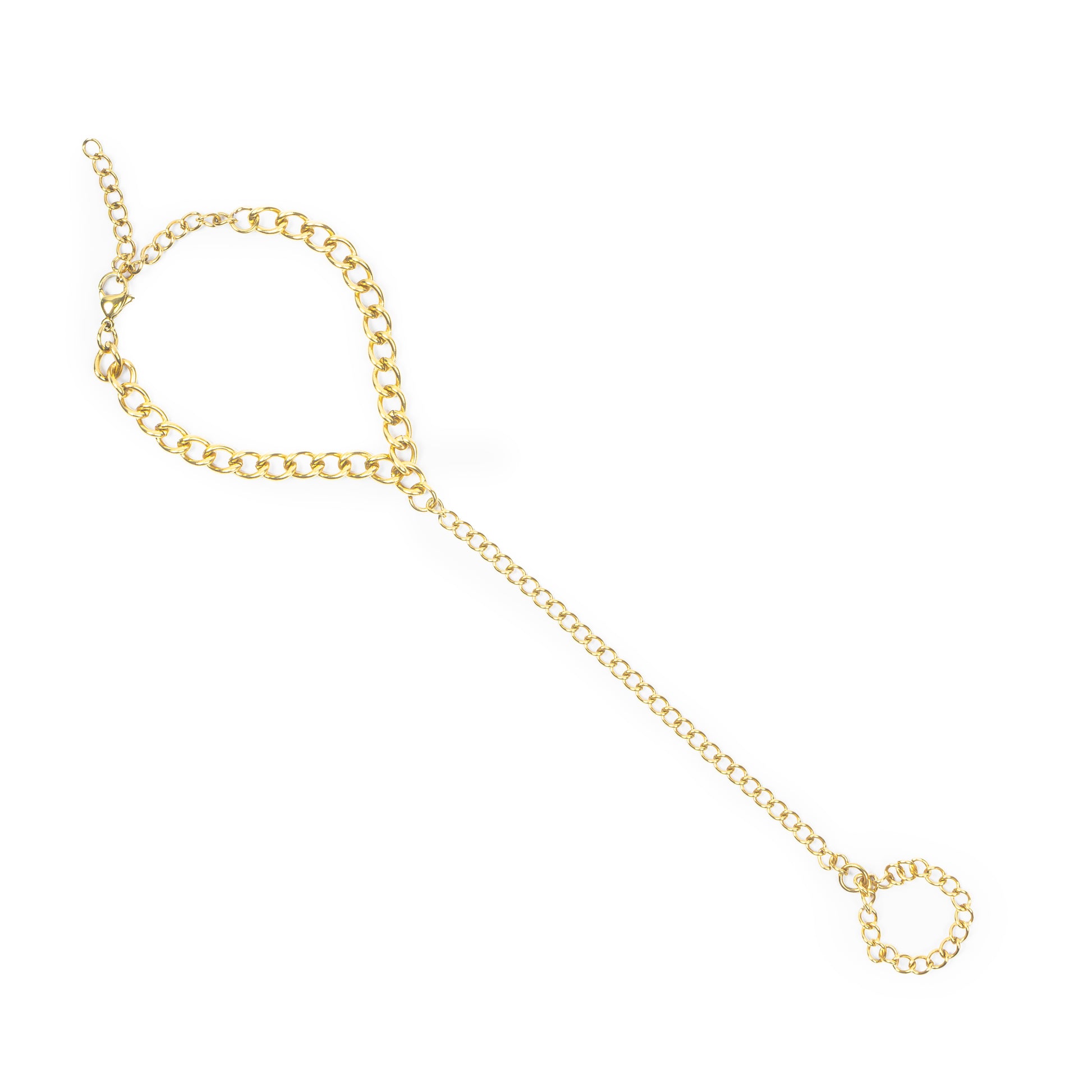 A timeless statement of elegance, this delicate gold-plated hand chain adds a touch of sophistication to any look. Perfect for everyday wear or special occasions, it's the epitome of minimal luxury.